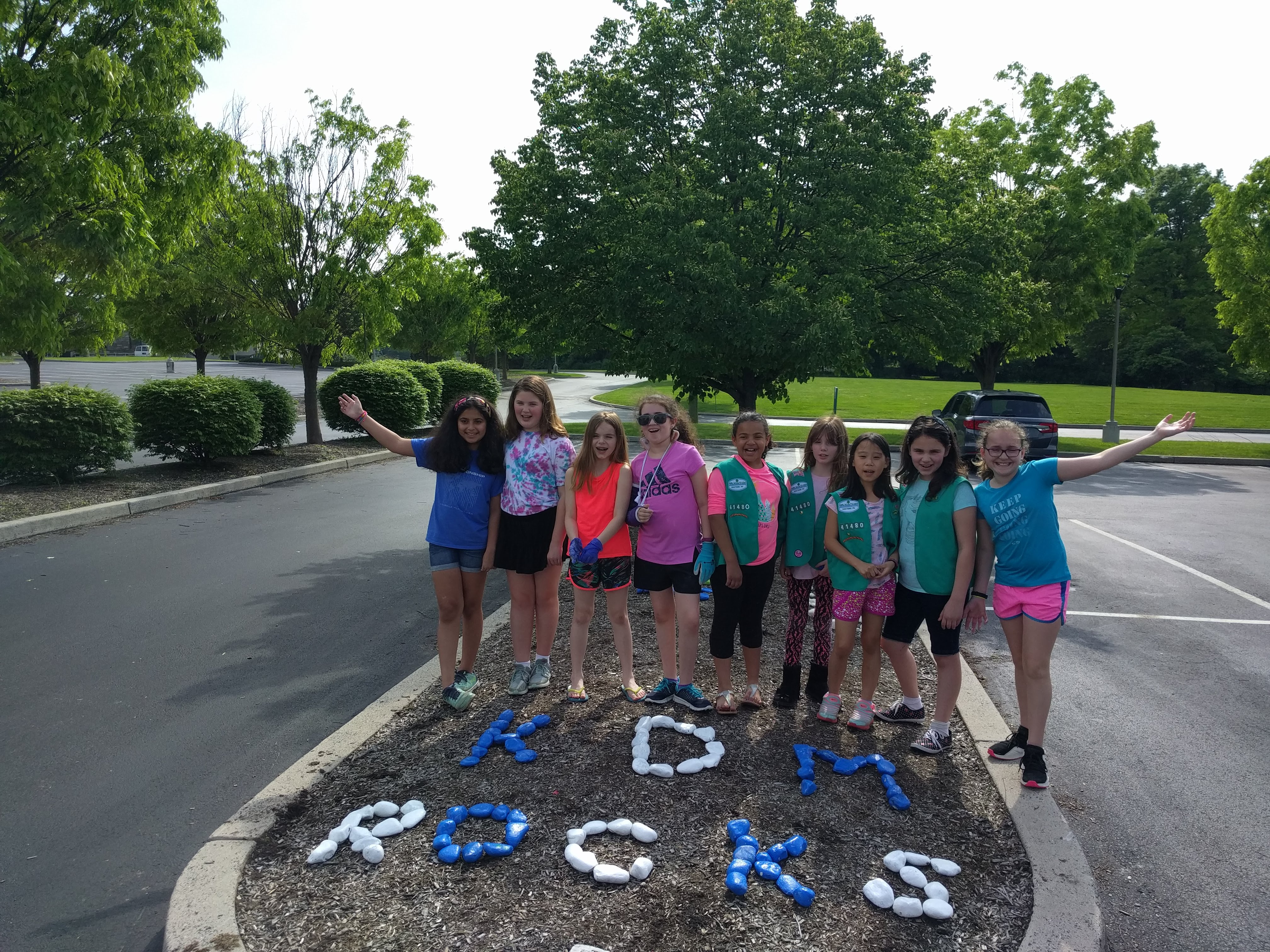 Placing our kindness rocks at our elementary school.