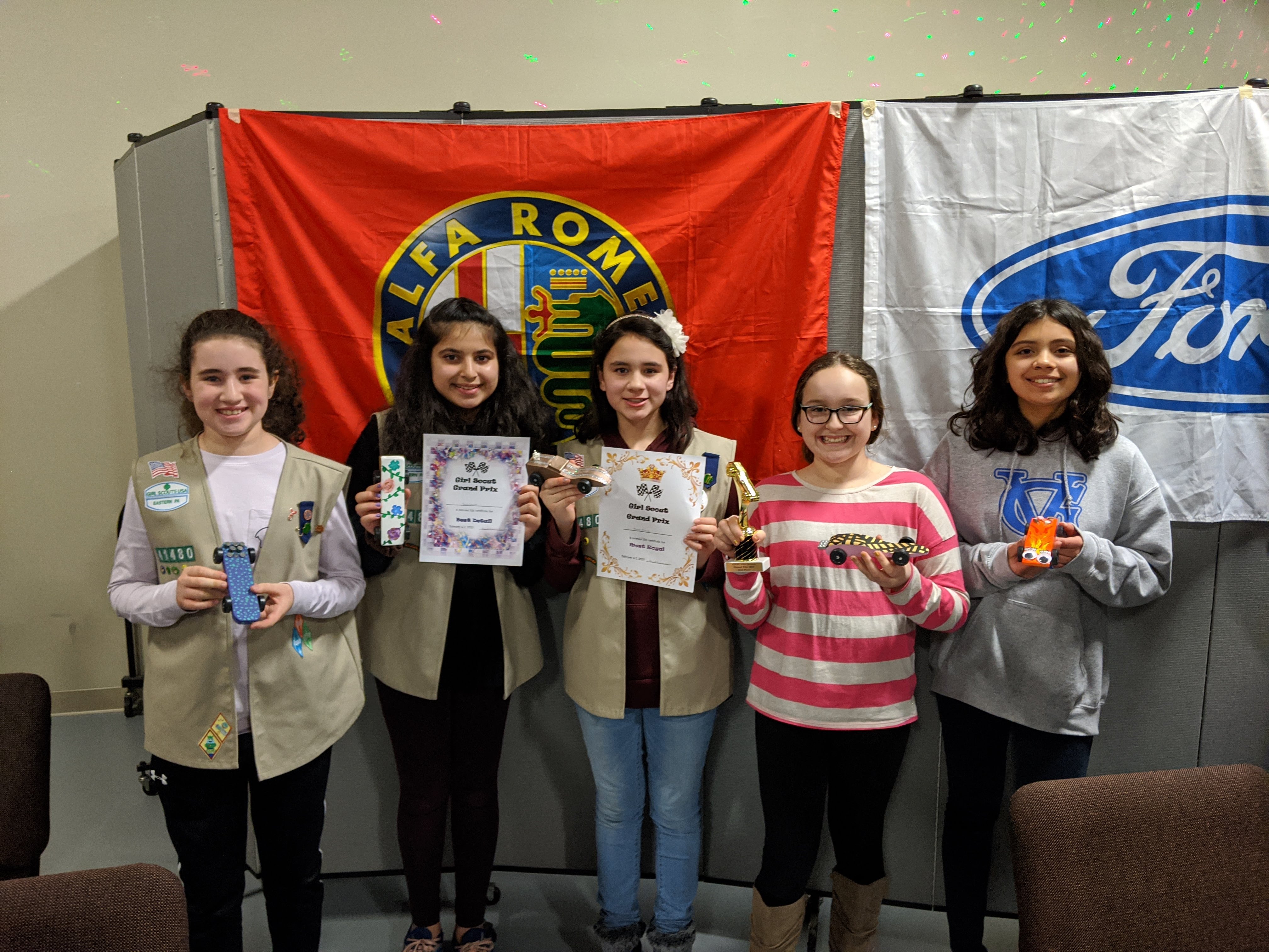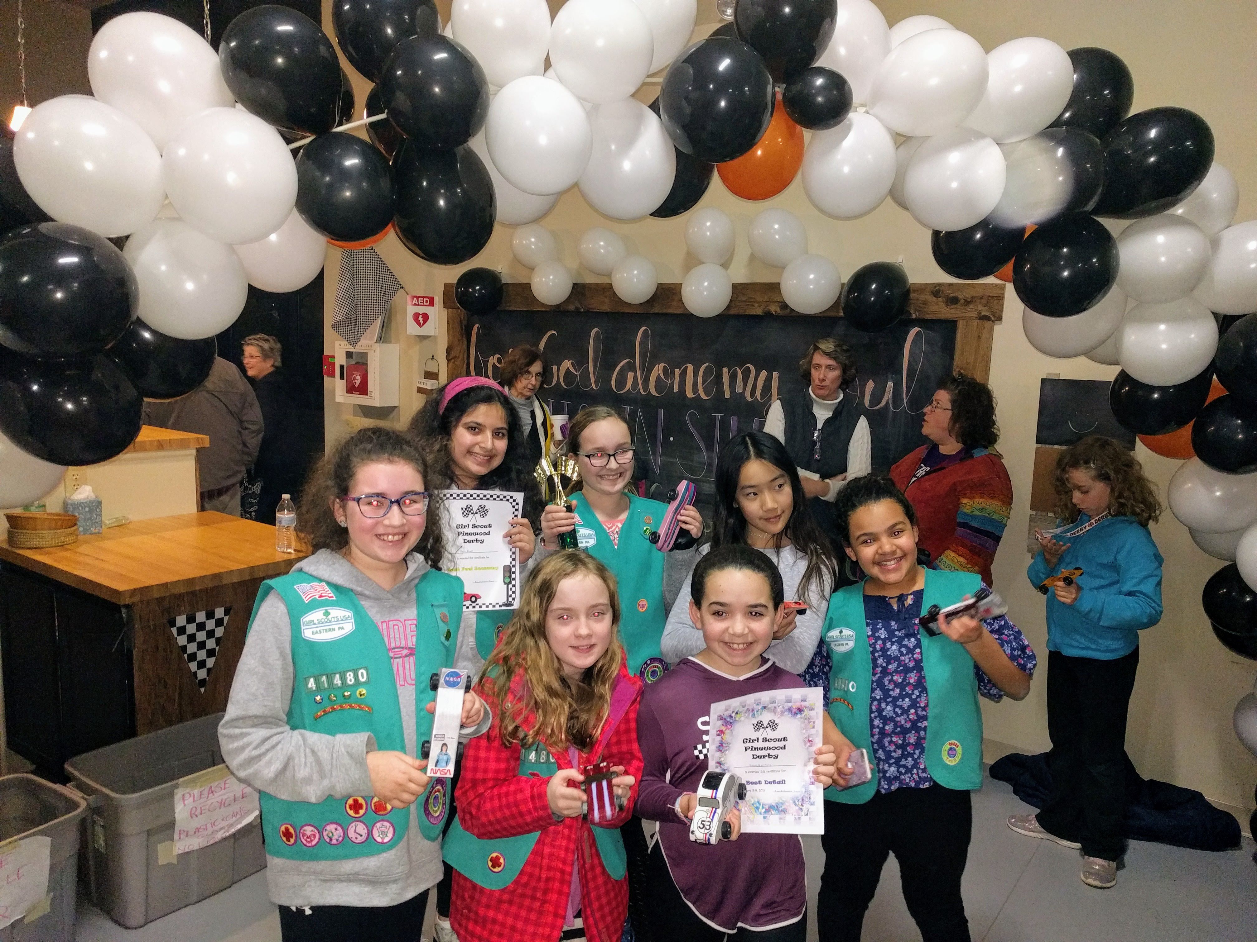 Pinewood derby awards with my Girl Scout troop!